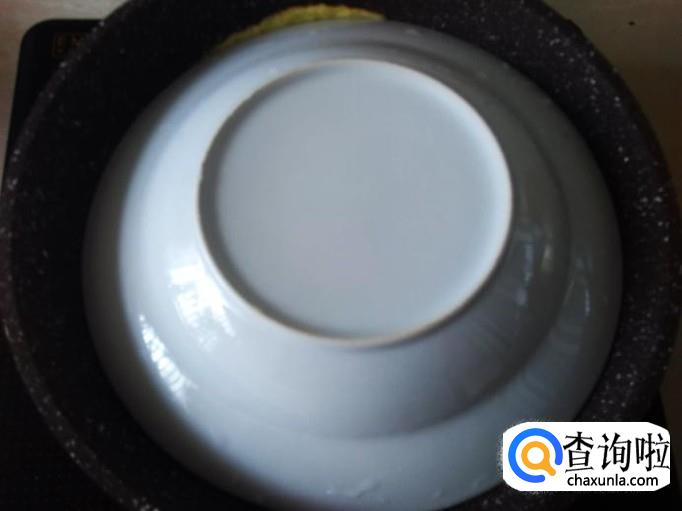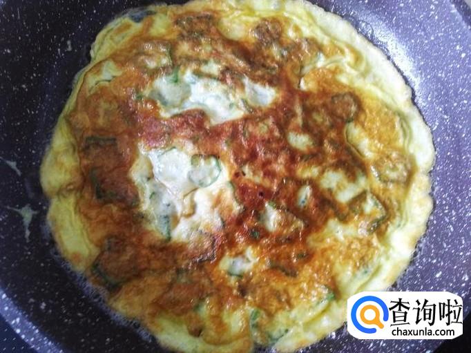 煎3分钟左右,用碟子盖住蛋饼,压紧碟子,把平底锅翻转过来,蛋饼就完好翻转在碟子了。