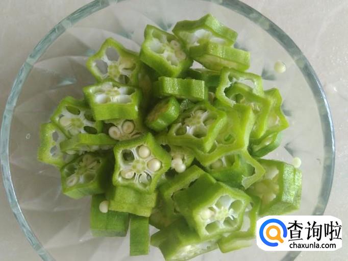 把秋葵清洗干净,然后切成薄片。