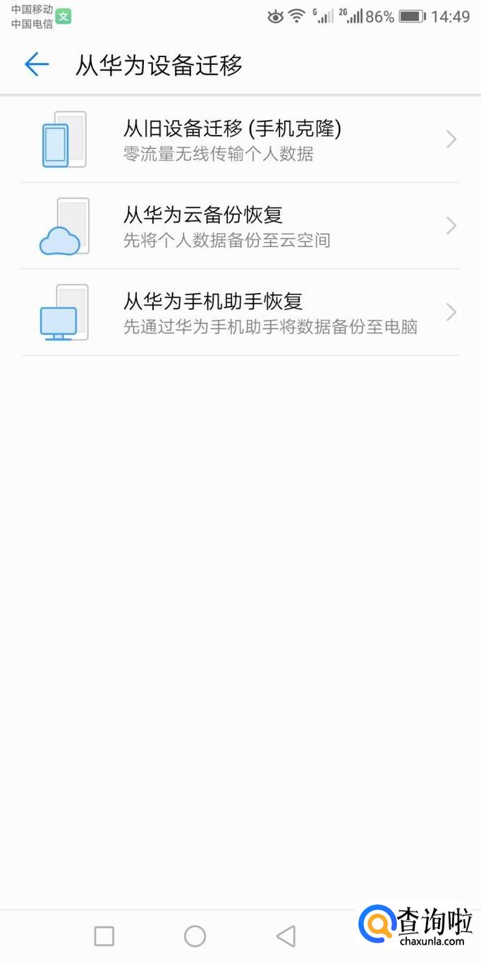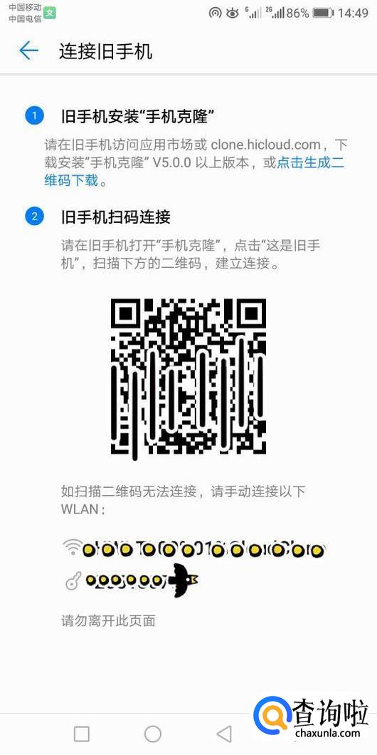 例如安卓,点击进入第二项,再点击第一项手机克隆(旧设备),扫描以下二维码,即可完成克隆