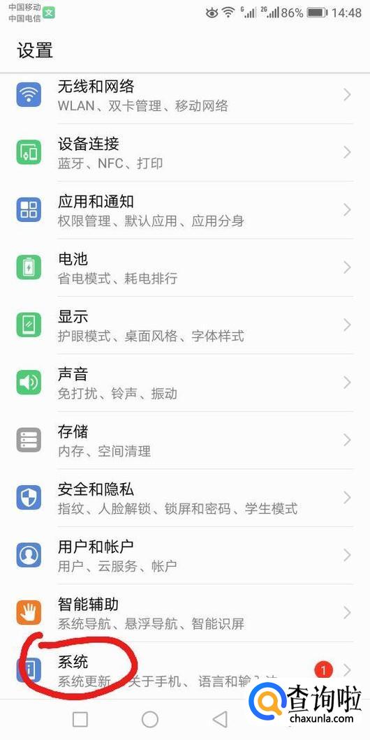 首先打开手机界面,点击设置界面,点击系统按钮