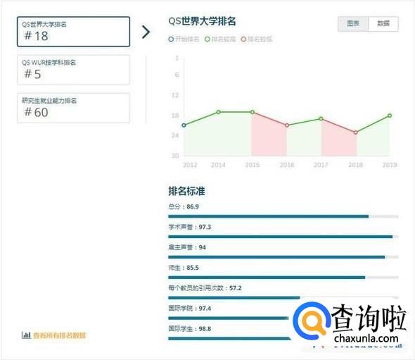 注:QS世界大学排名是世界公认最具影响力的全球性大学排名之一,主要评价指标为:学术领域的同行评价(40%)、全球雇主评价(10%)、单位教职的论文引用数(20%)、教师/学生比例(20%)、国际学生比例(5%)、国际教师比例(5%)