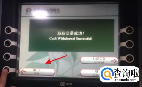 拿到钞票之后可以按“继续”进行取款、查询等操作。如果不想继续进行操作了一定要记得按“取卡”按键先退卡,再慢慢清点现金,以防30秒内不进行任何操作ATM自动吞卡。