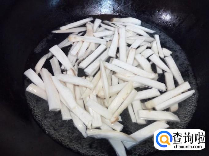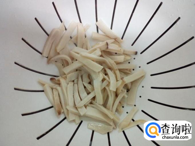 杏鲍菇用水清洗干净,控干水分,切成条。