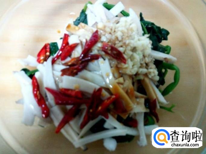 蒜,味精,红干椒,白糖,陈醋,蚝油,蒸鱼豆豉油,芝麻油,油。