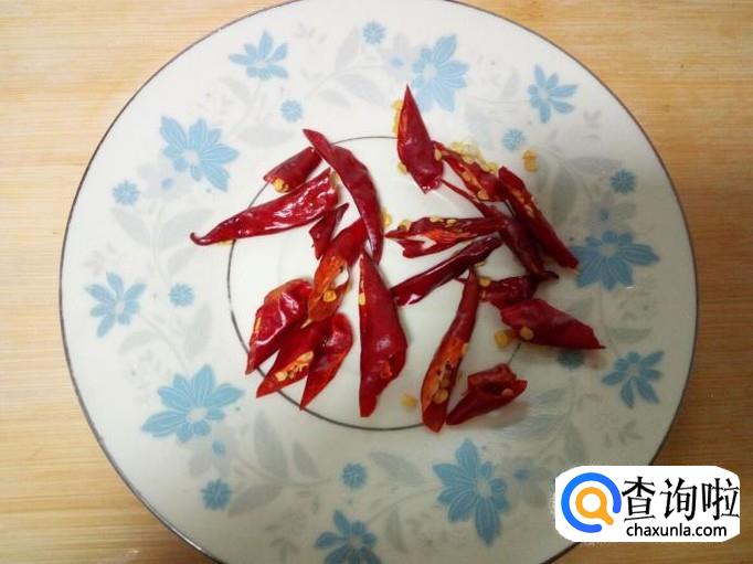 红干椒用水清洗干净,控干水分,斜刀切成段。蒜切成末。