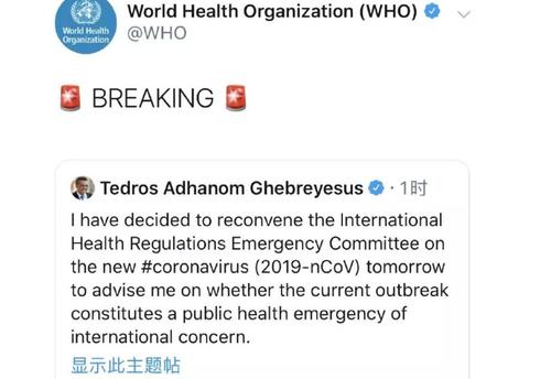 因为中国乃至全世界疫情的发展,WHO决定再次召开会议,决定是不是要把这次疫情列入PHEIC(国际健康紧急事件) 在发布之前,你们看了微博、豆瓣、贴吧上类似下面的信息: