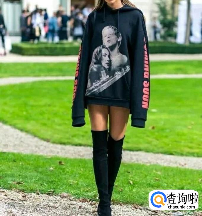 当然还有上面一个卫衣,再加短裤,下面穿一个长筒高跟靴,这样搭配不觉得瘦才怪呢