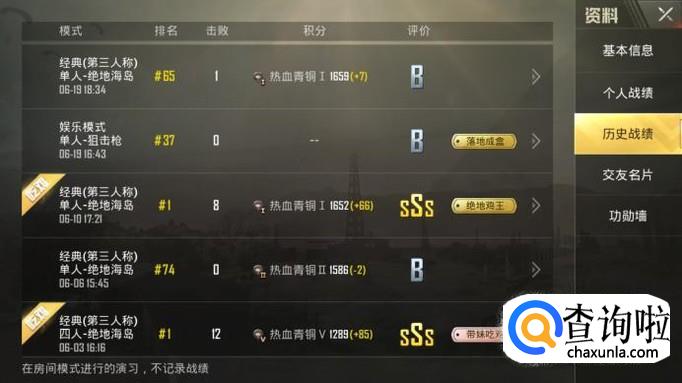 进入个人资料之后,选择历史战绩,再选择想要举报玩家的游戏场次。
