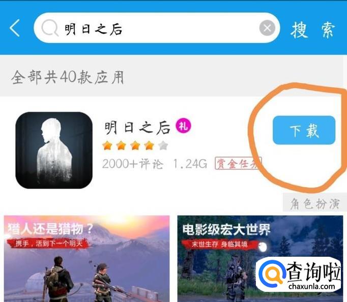 在搜索出的结果中点击“下载”选项,下载明日之后手游