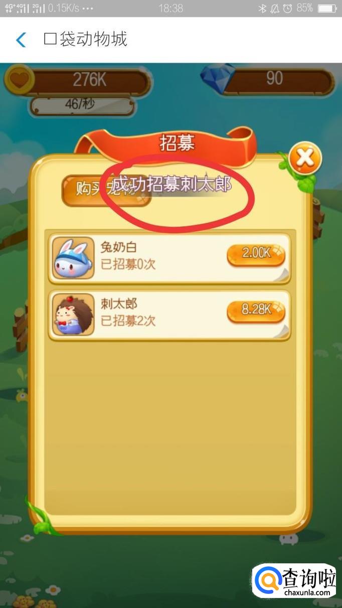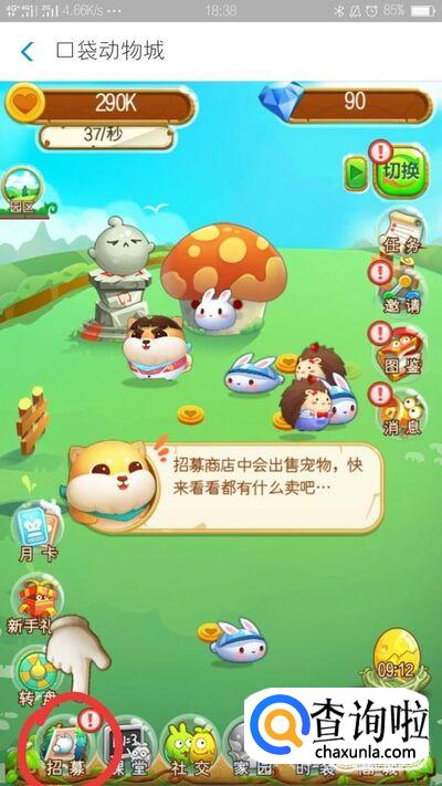在口袋动物城页面的右下角点击“招募”,点击进入操作,如下图红色标注的地方。。