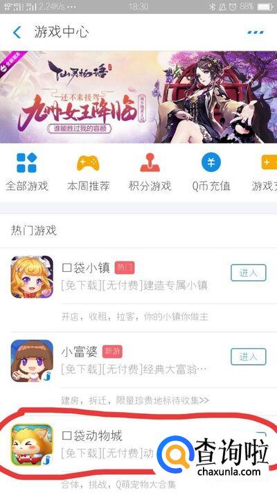 在游戏中心页面中,找到“口袋动物城”(免下载无付费的一款动物合体游戏),然后我们需要点击进入游戏。