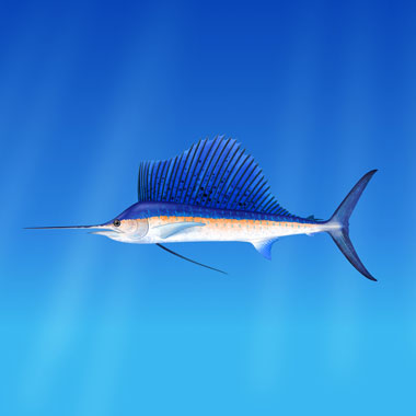 旗鱼属于鲭亚目(或写“鲈形目”Perciformes)旗鱼科,又名芭蕉鱼,是(Sailfish)洄游性的鱼类,外形略扁,呈流线型,肌肉发达,最大的旗鱼可长达数米,重达上百千克,是海洋中游速最快的鱼类。
