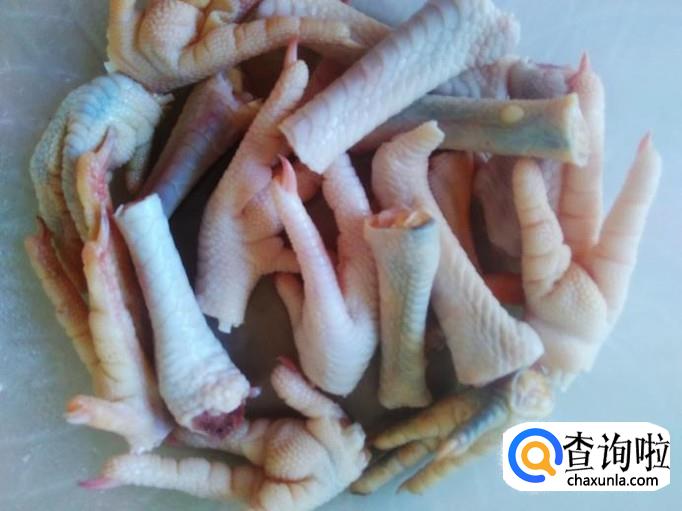 首先把鸡脚清洗干净,然后斩成一段段,黑豆准备好。