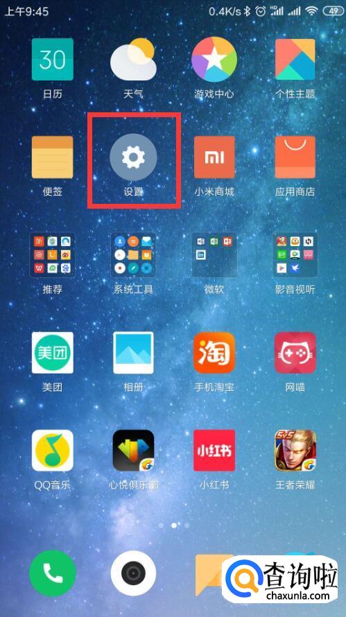 找到主界面手机“设置”按钮,点击进入设置。