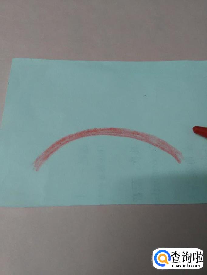 先用红色画一条宽宽的弧线,是彩虹中的一种颜色。