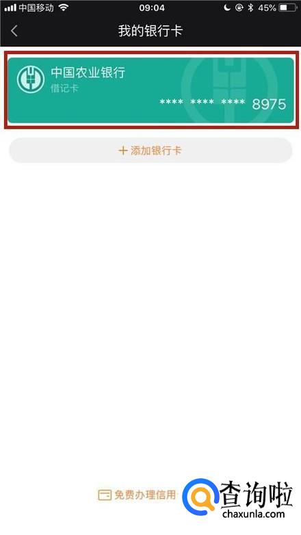 接着点击一张我们所绑定的银行卡,如下图所示。