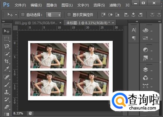 接下来按住Shift键将两张相片所在的图层都选中,再按住Ctrl+Alt键不放,按住相片往下拉到如图所示位置放手,就可以复制出第三、四张。然后打印出来就可以了。