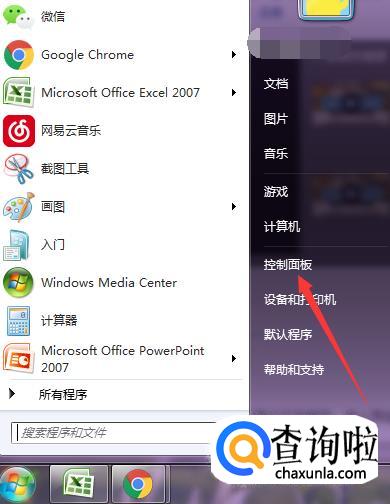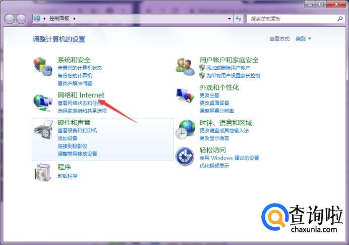 首先,我们单击“开始”菜单,然后找到并点击“控制面板”,然后点击“网络和Internet”。