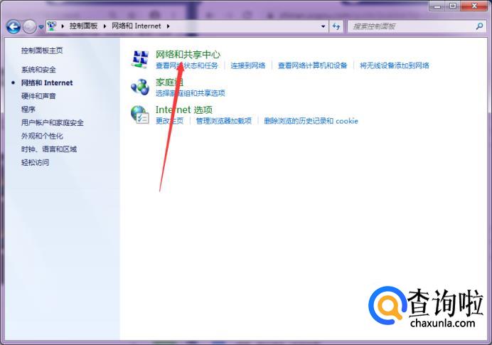 在弹出来的窗口里我们找到“网络和共享中心”并点击它。