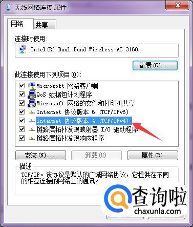 在属性弹出来的窗口里面找到“Internet协议版本4”,双击打开它。
