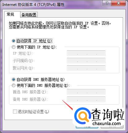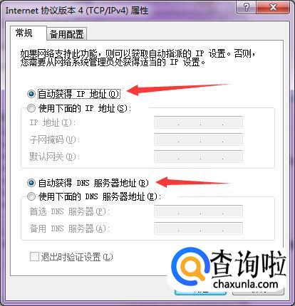 然后在弹出来的窗口里面选择“自动获取IP地址”和“DNS服务器”地址。