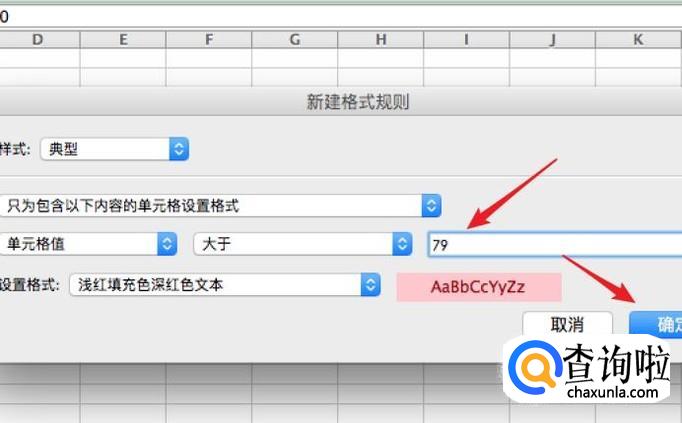 点击确定按钮后,就可以看到我们的数据只要大于79就会显示背景色来突出显示了。