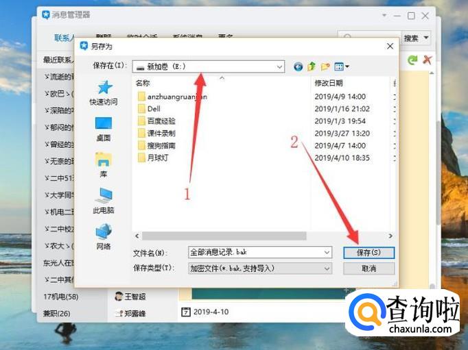 进入之后,设置储存位置,点击“保存”即可将聊天记录备份到电脑。