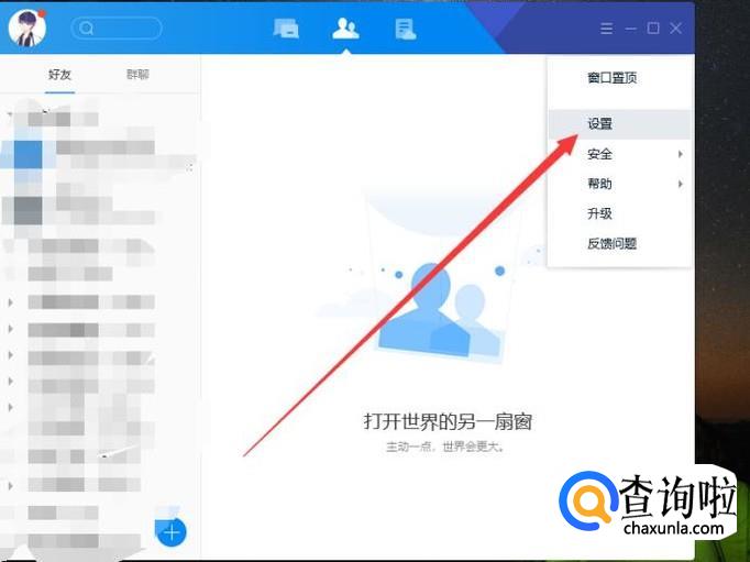 登录电脑QQ,找到“设置”,点击并进入,如图所示。