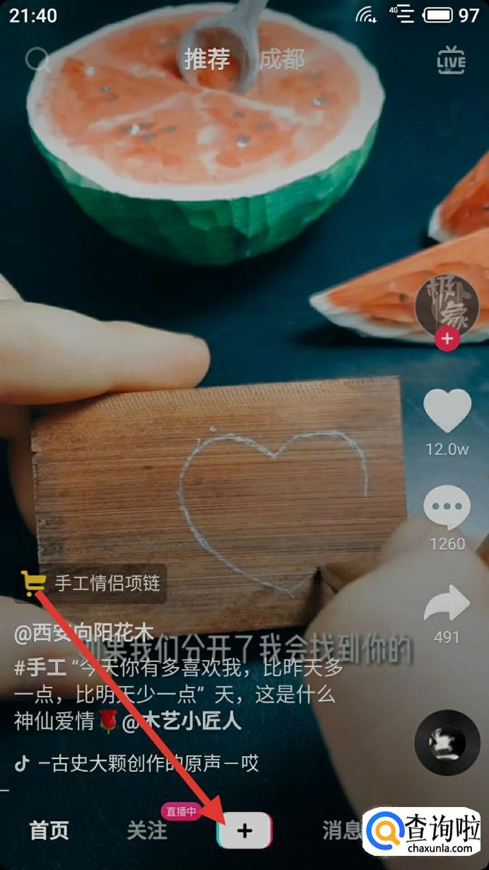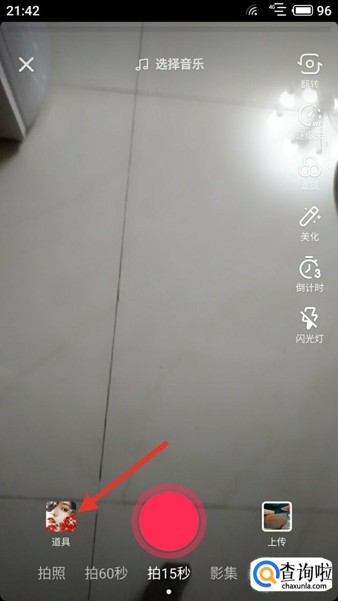 首先你需要打开抖音中间位置加的图形,进入视频拍摄界面。