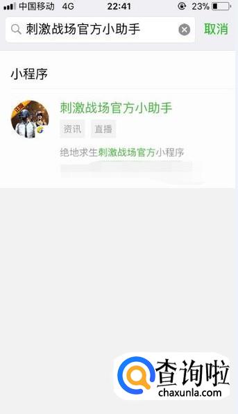 这样就能找到刺激战场官方小助手的小程序了,然后点击它。