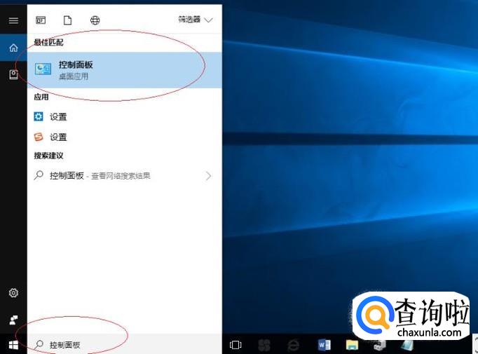 搜索框输入"控制面板",点击"最佳匹配→控制面板"项。