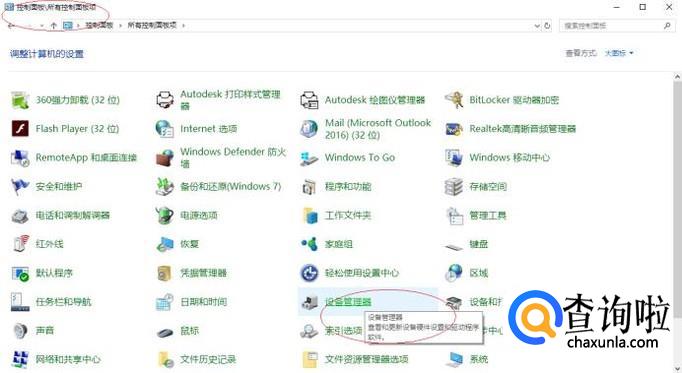 点击"设备管理器"图标,用于查看和更新设备硬件设置和驱动程序软件。