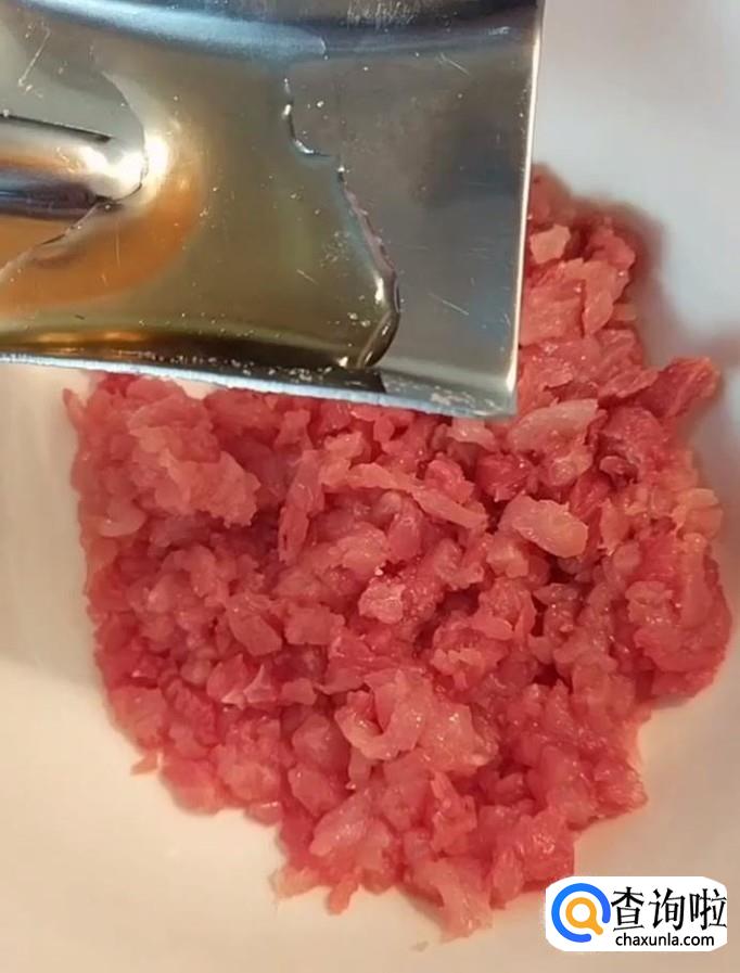 接着我们将猪肉切丁放入一个碗中,放入盐,料酒,腌制10分钟