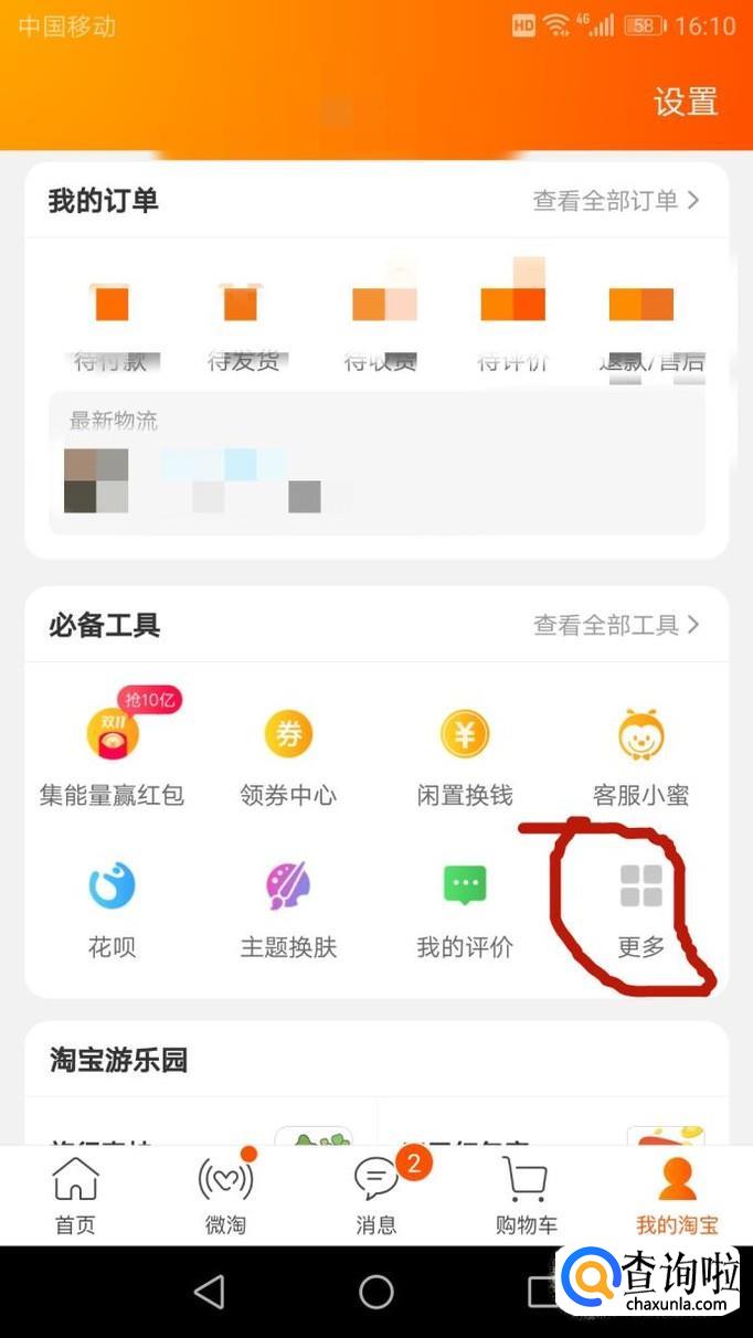 进入“我的淘宝-必备工具”,点击更多进入。