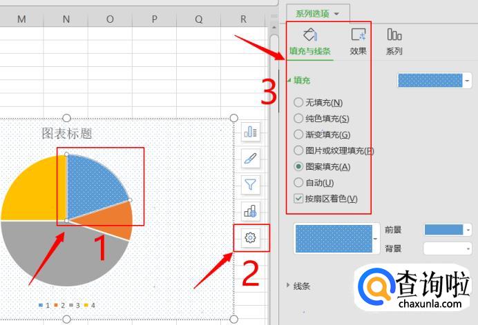在扇形图设置里选择图片或者纹理填充,这样的填充效果更有特点。选择需要填充的部分,在点击旁边的设置后,就可以进行填充想要的效果。