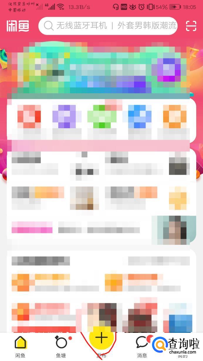 用手机打开闲鱼,点击右上角“+”。