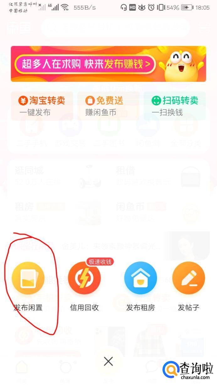 进入界面,选择“发布闲置”。
