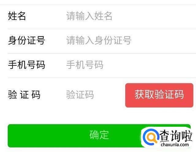 输入姓名、身份证号、手机号码及验证码。