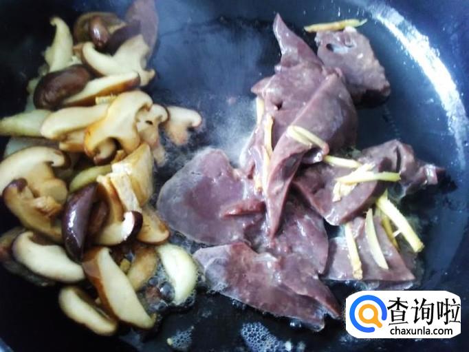 把羊肝清洗干净,然后切成薄片,加适量的盐、姜丝、1勺料酒腌制几分钟,香菇去掉根蒂,清洗干净切成片。