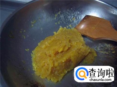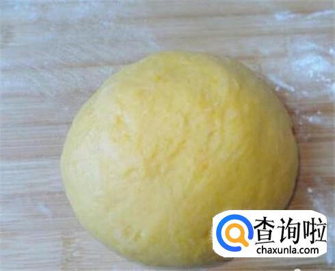 把果汁炒成糊状后,趁热加入适量的糯米粉,揉成光滑的面团。
