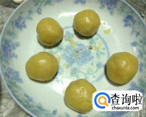 再把面团捏成一个个小圆球,放凉后,放入冰箱冷藏,要包月饼的时候,直接拿出来用就可以了。