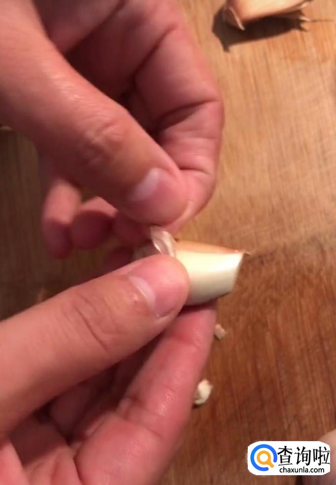 首先我们将大蒜剥成一个个的,然后将其头部切除