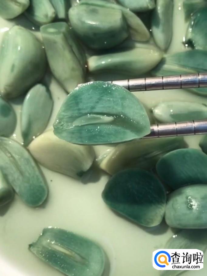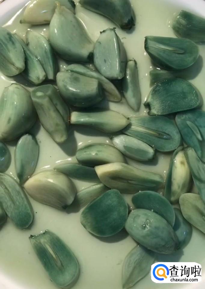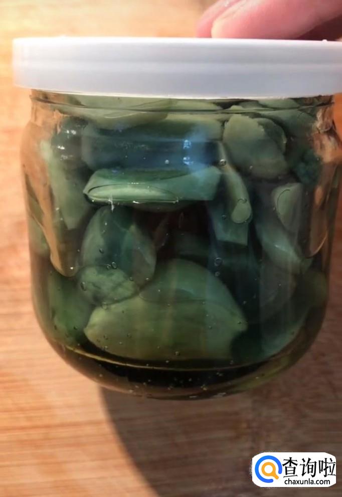最后美味的绿蒜就腌制好了,装入盘中,配上饺子更加美味哦!