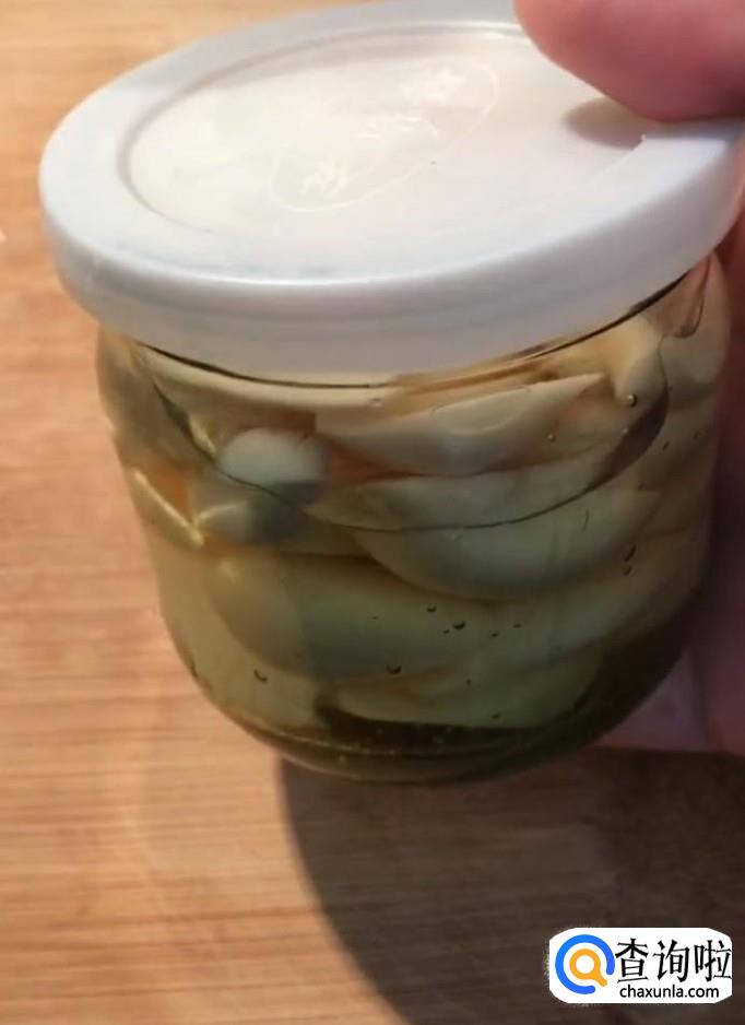 然后我们将装好蒜的玻璃罐子盖好盖子,放在常温下一个星期左右