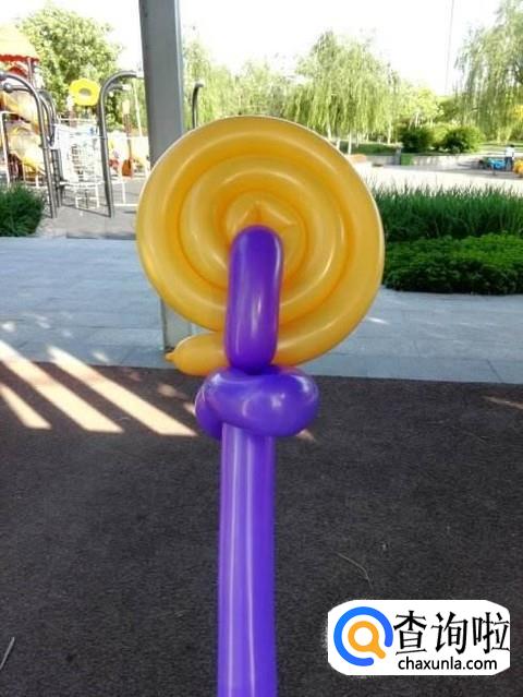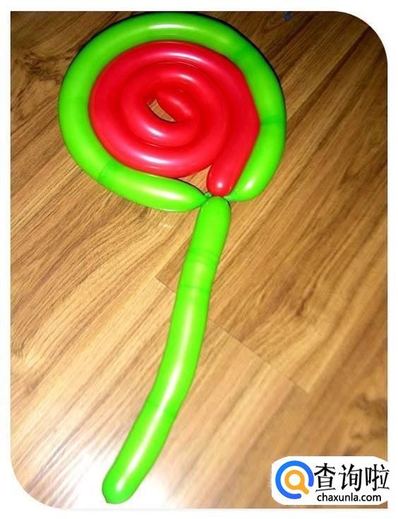 最后再用一个小一点的长条气球把刚才折起来的部分裹上,以防上面套起来的气球松散。