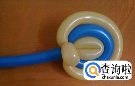 把做成圈的长条气球从小到大套起来,然后再取出一个长条气球把套起来的气球下方折起来。
