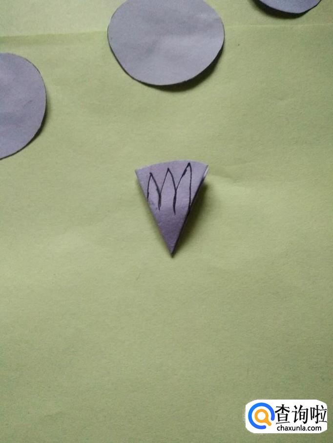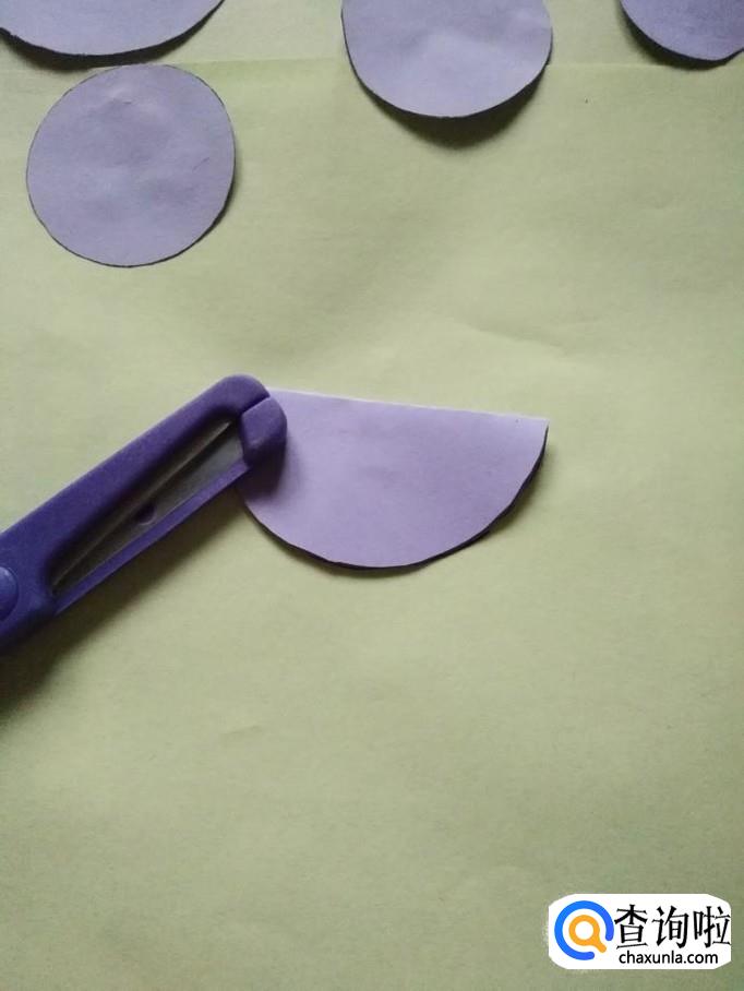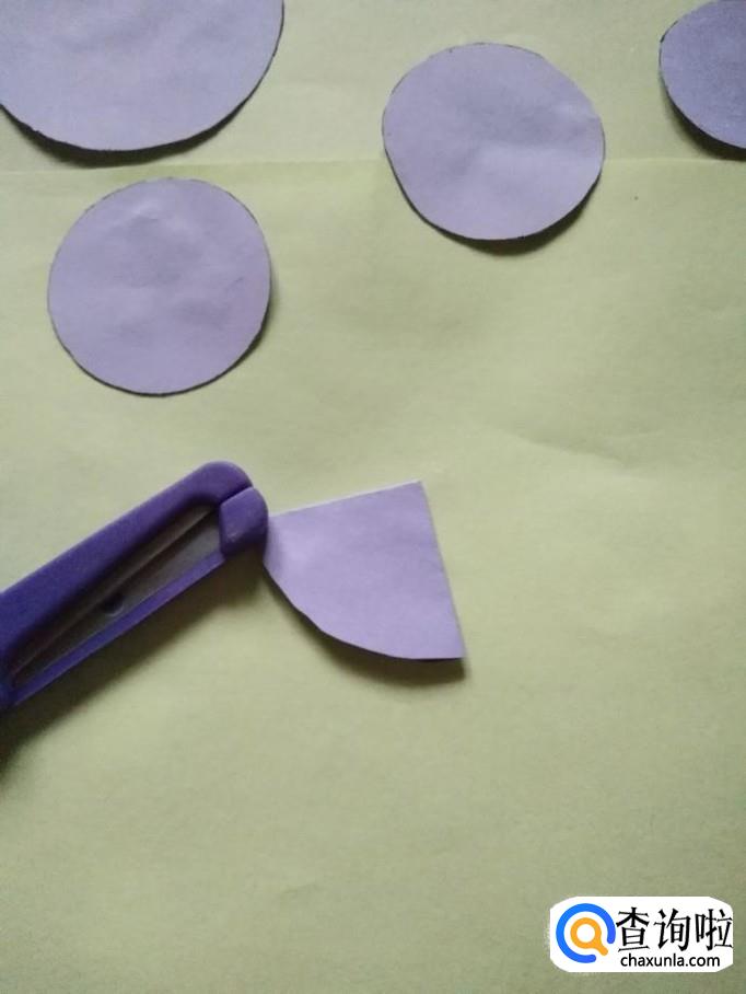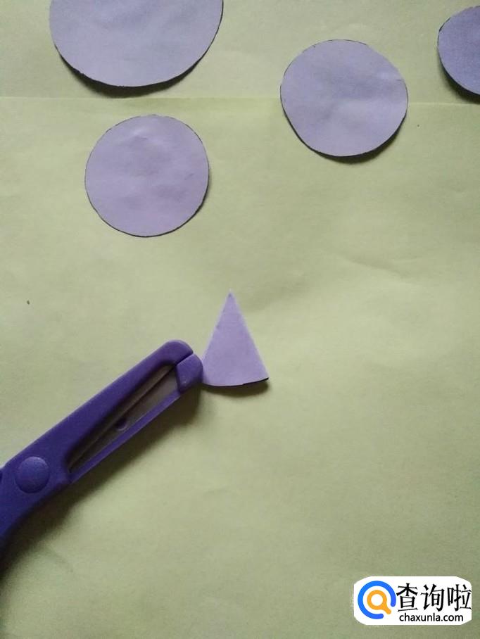接着按相同的折法和剪法把剩下的5个圆都做成这个样子,如图