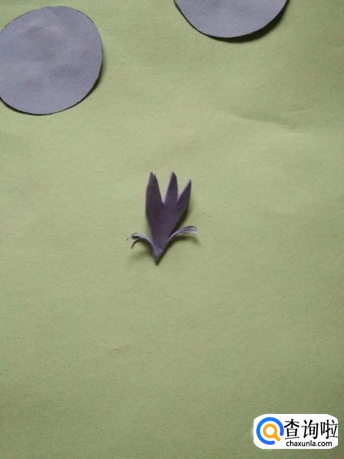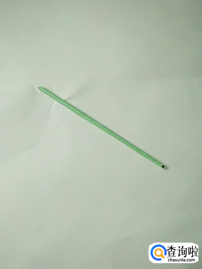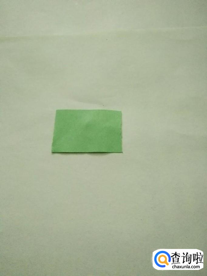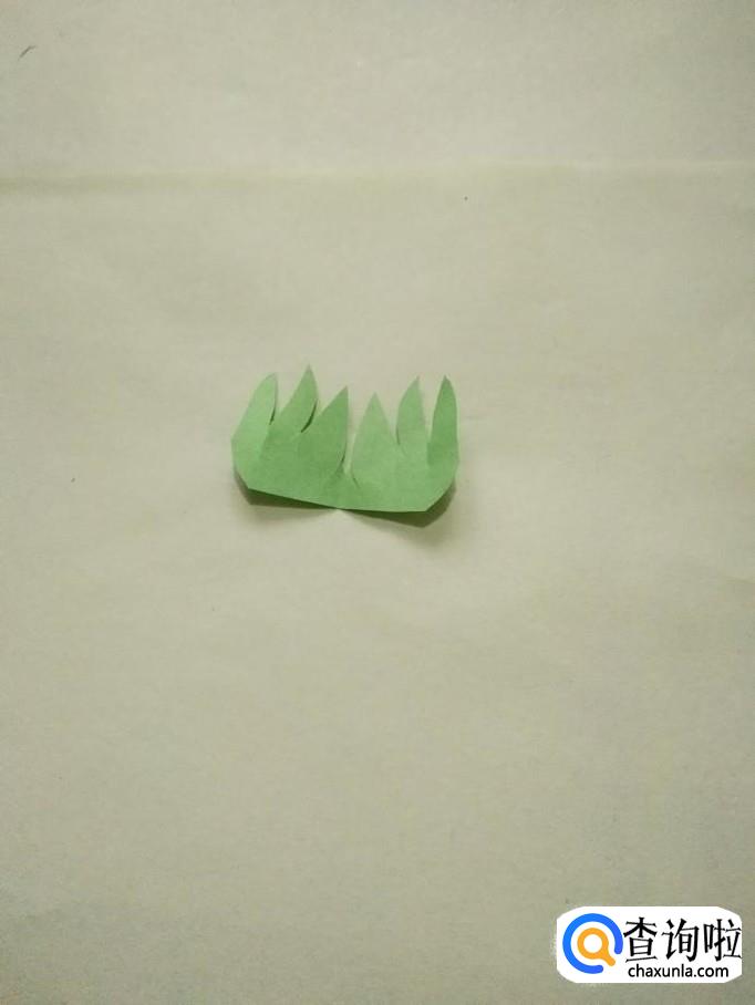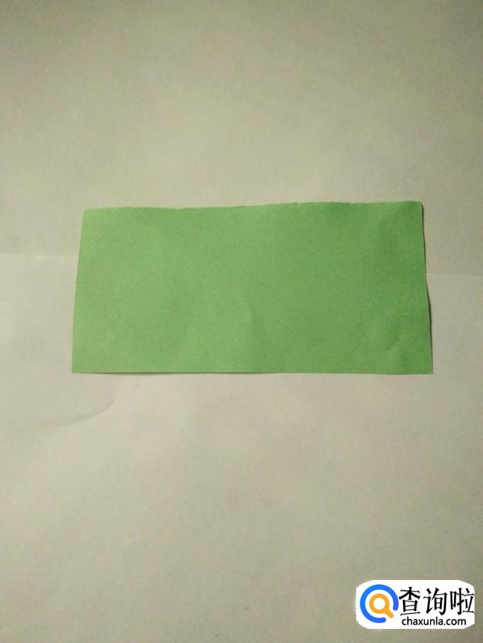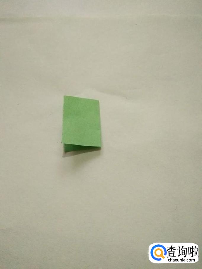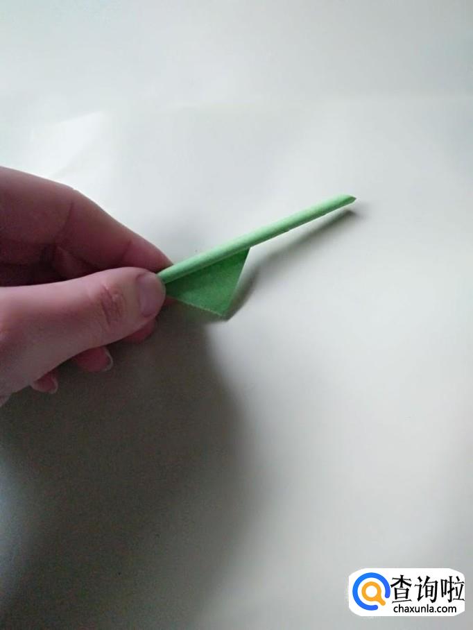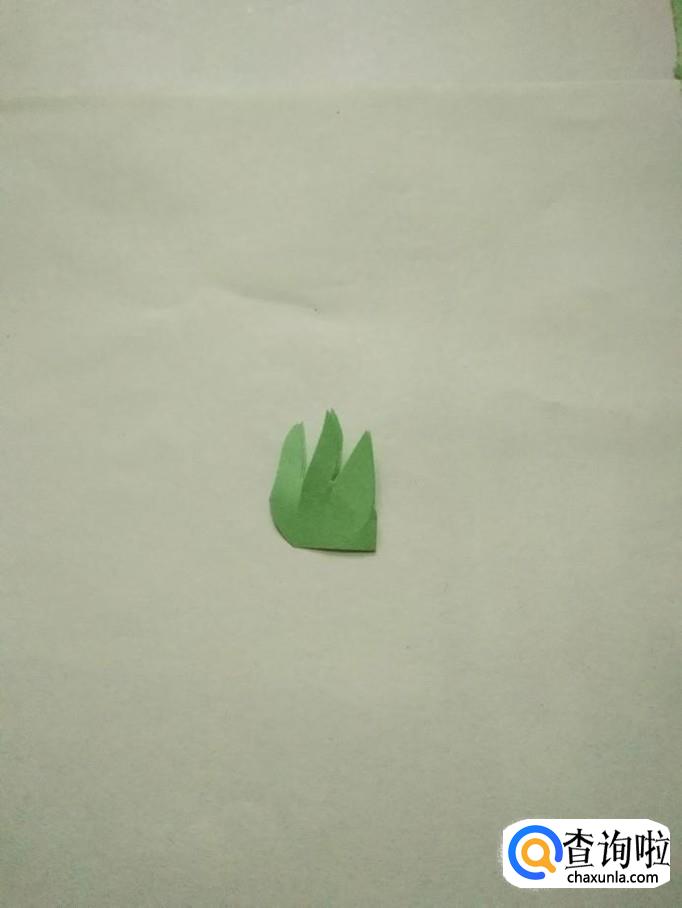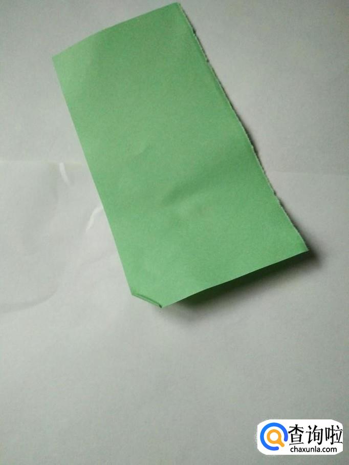 下面我们来做叶子。选一个非常小的绿色长方形彩纸,如图
