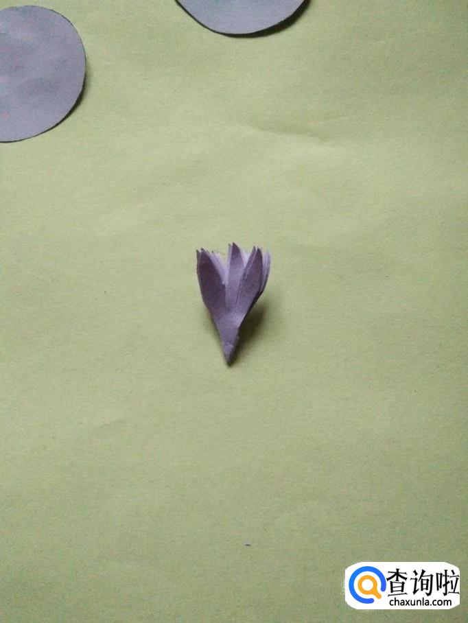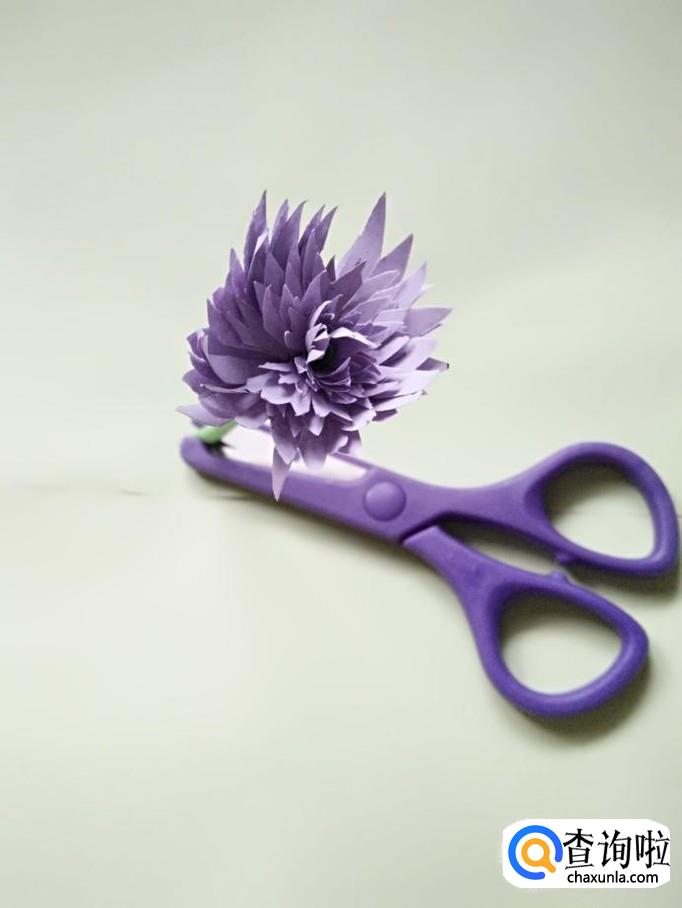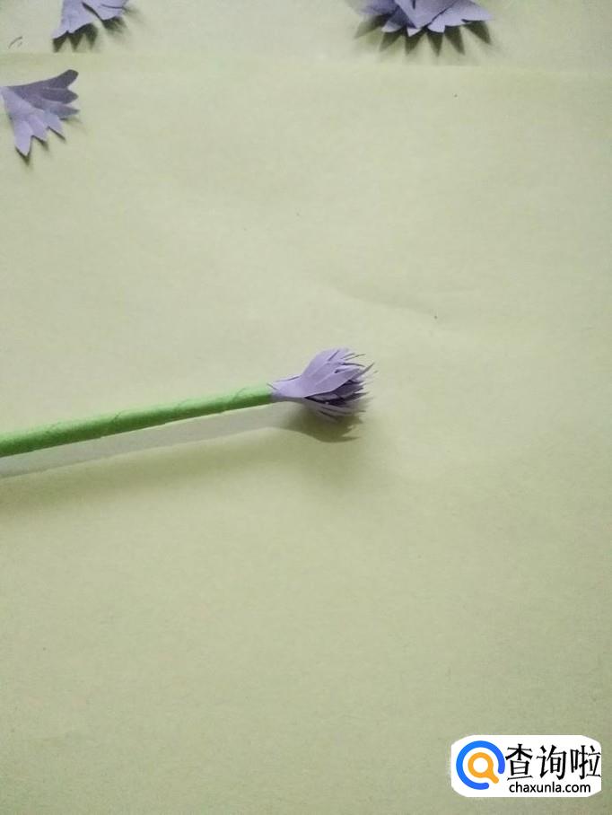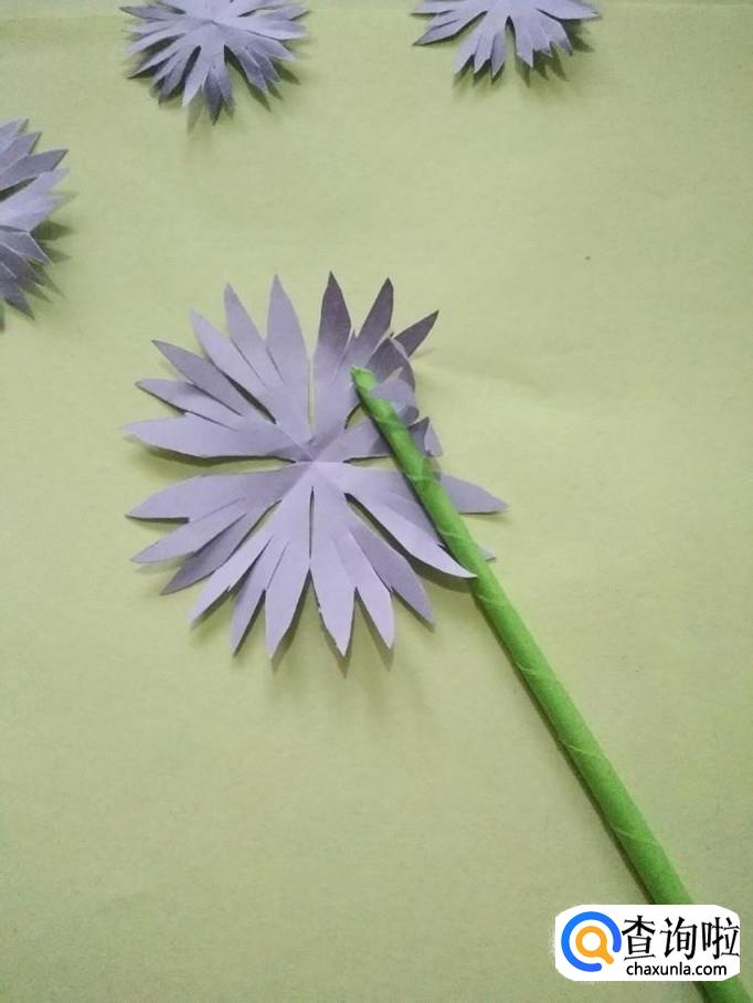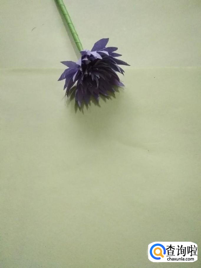 直到把所有花瓣都粘贴好。这样菊花的花朵部分也做好了,如图