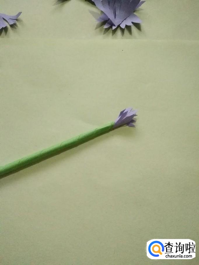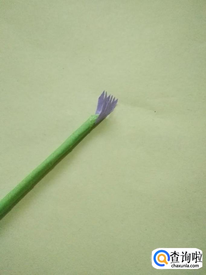 再用固体胶把纸张的最后粘黏好,不让它散开,这样菊花的枝干就做好了,如图